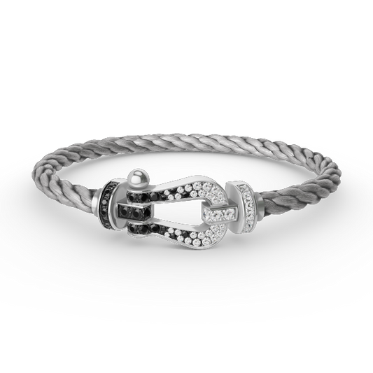 [Lora-Jewelry]FORCE LARGE HORSESHOE BLACK WHITE DIAMOND BRACELET SILVER