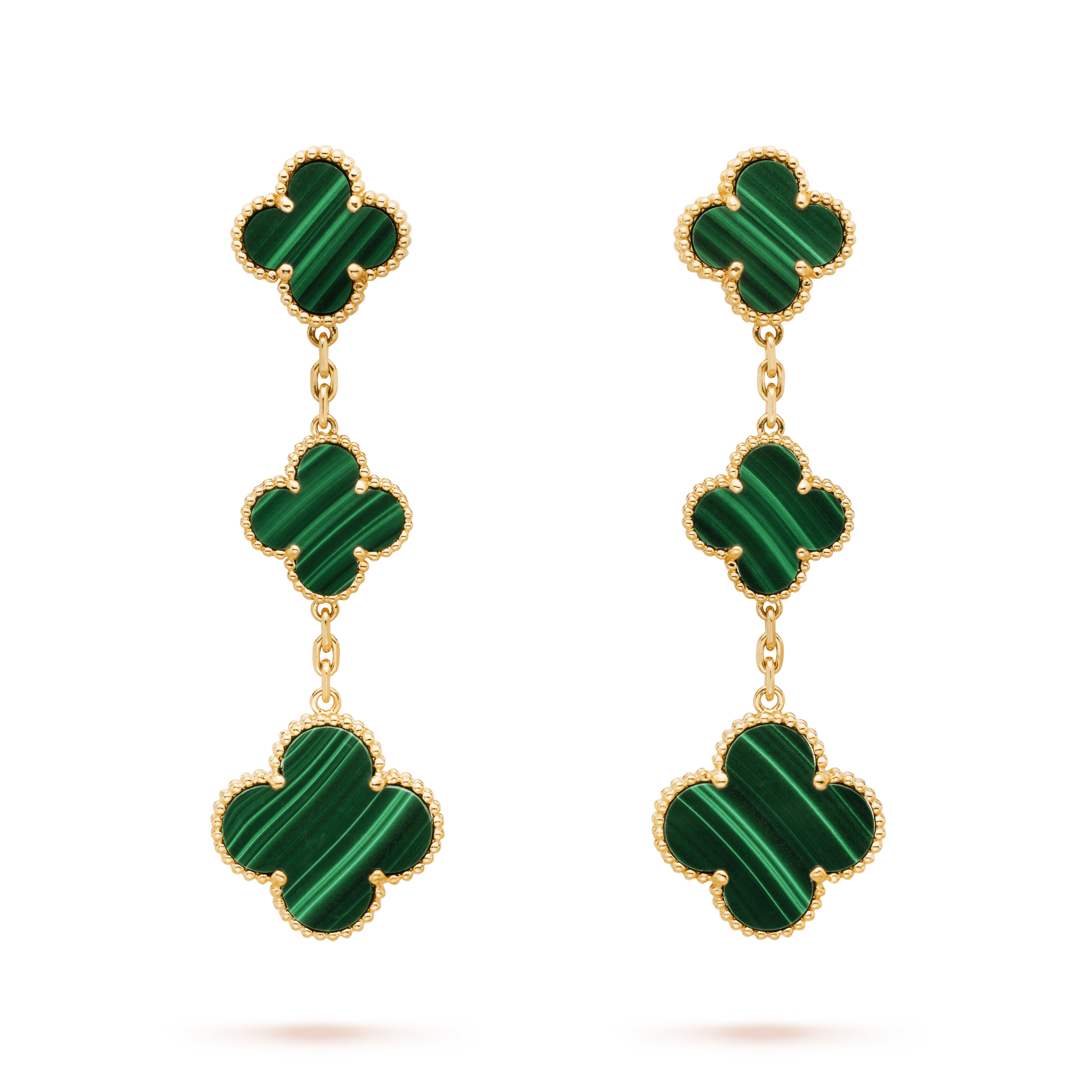 [Lora-Jewelry]CLOVER MALACHITE 3 MOTIFS GOLD